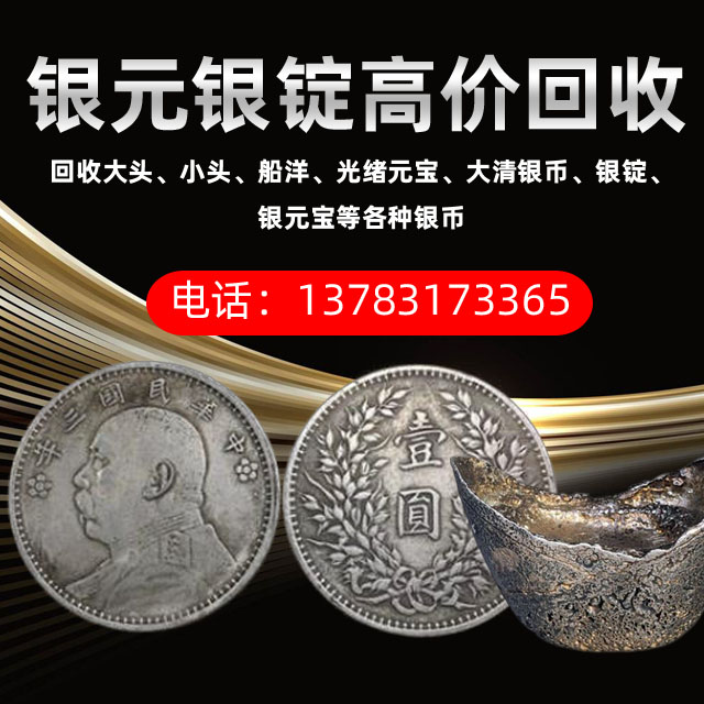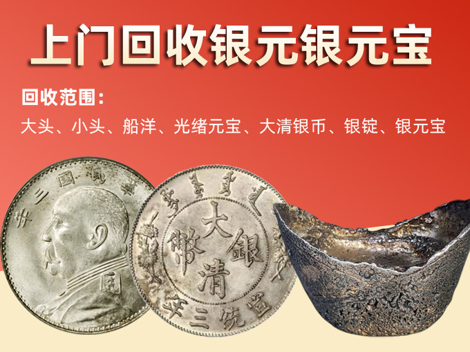 上門(mén)回收銀元 銀元寶,回收范圍包含:大頭、小頭、船洋、光緒元寶、大清銀幣、銀錠、銀元寶等各種銀幣,價(jià)格公道誠(chéng)心求購(gòu)。全國(guó)可上門(mén)收購(gòu),本信息長(zhǎng)期有效,騙子和賣(mài)假貨的人請(qǐng)走開(kāi)!有銀元消息可以與我們合作,也請(qǐng)知假售假者不要來(lái)浪費(fèi)大家寶貴的時(shí)間!